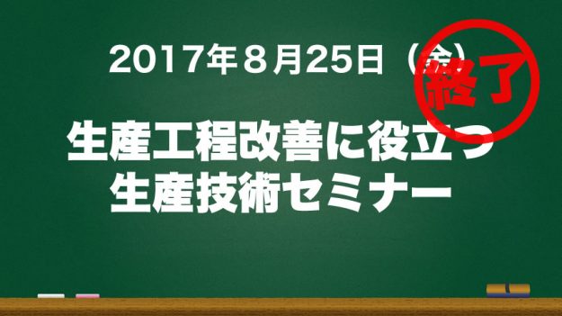 「生産工程改善に役立つ生産技術セミナー」 各講座の内容、及び講師に関しましては、年間セミナースケジュールの8月部分をご覧ください。 日時:平成29年8月25日(金曜日)10:00~16:30 (受付9:30~) 場所:ビ…