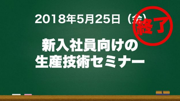 新入社員向けの生産技術セミナー セミナー情報By admin2018年3月27日「新入社員向けの生産技術セミナー」 各講座の内容、及び講師に関しましては、年間セミナースケジュールの5月部分をご覧ください。 日時:平成30年5月25日(金曜日)10:00~16:30 (受付9:30~) 場所:ビッグパ…