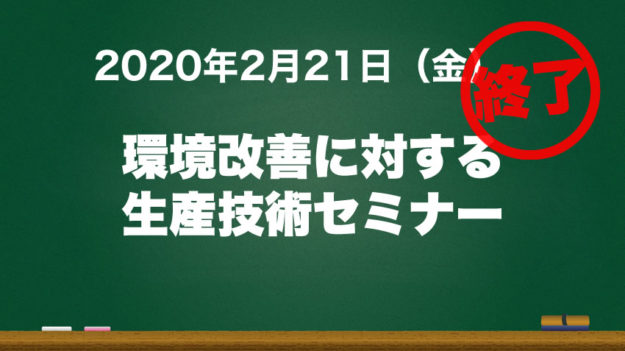 「環境改善に対する生産技術セミナー」 各講座の内容、及び講師に関しましては、年間セミナースケジュールの11月部分をご覧ください。 日時:令和2年2月21日(金曜日)10:00~16:30 (受付9:30~) 場所:ビッグ…