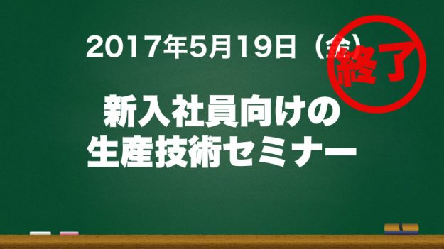 「新入社員向けの生産技術セミナー」 各講座の内容、及び講師に関しましては、年間セミナースケジュールの5月部分をご覧ください。 日時:平成28年5月19日(木曜日)10:00~16:30 (受付9:30~) 場所:ビッグパ…